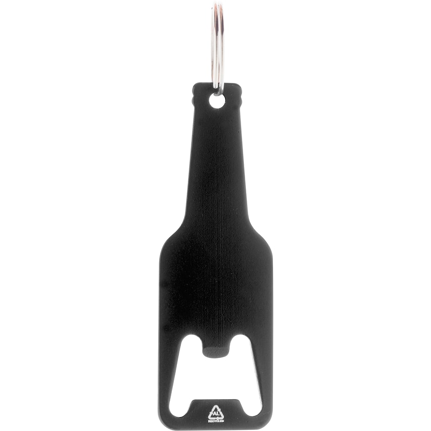 Abrebotellas con forma de botella de aluminio reciclado. Perfecto como llavero. Se personaliza con impresión o grabado láser.