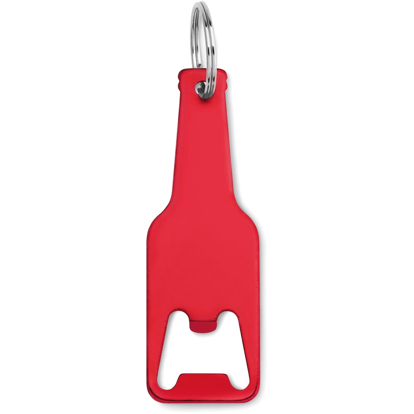 Abridor con forma de botella con llavero. El modelo Sienna es de aluminio y está disponible en varios colores. El marcado se realiza con impresión o con grabado láser. Un abridor bonito y cómodo de usar.