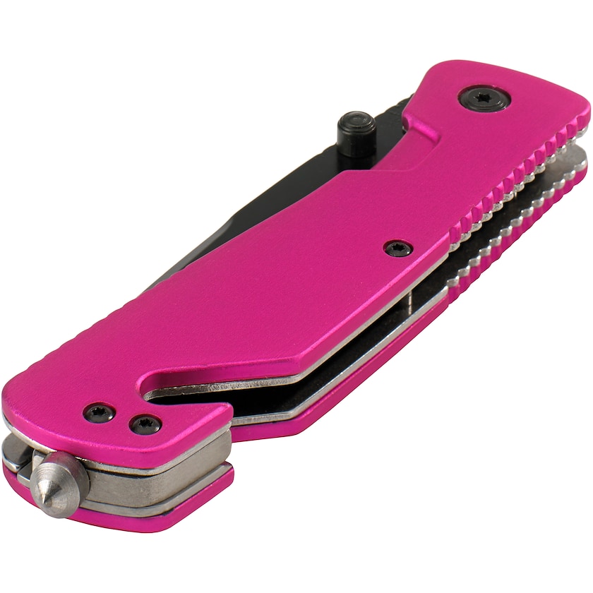 Martillo de emergencias con varias funciones disponible en varios colores. Colour tiene cortador de cinturones, martillo de emergencias y navaja. La superficie tiene goma. Se entrega en caja de regalo.