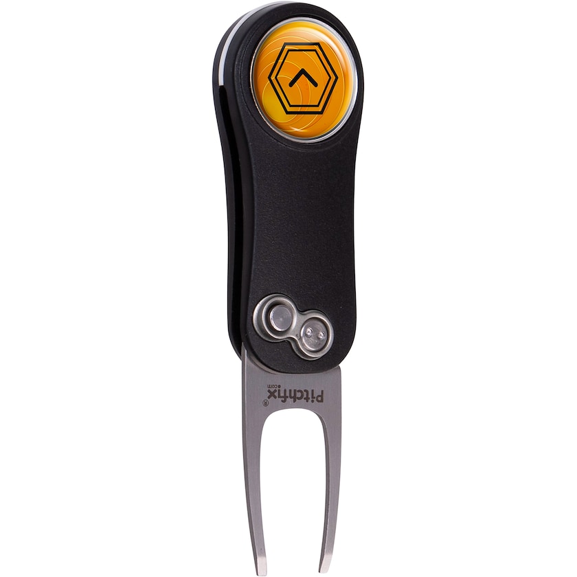 Exclusivo arreglapiques con marcador. Shinnecock está fabricado con aluminio y ABS. Se abre de forma automática y se pliega de forma manual. La impresión del marcador se cubre con una capa protectora de epoxi.