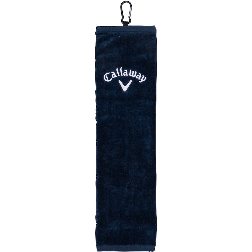 Exclusiva toalla de golf de Callaway. La toalla está fabricada en tejido de algodón de 500 gramos y tiene tres dobleces. La toalla tiene el logo de Callaway. Tu logo se realiza con bordado.