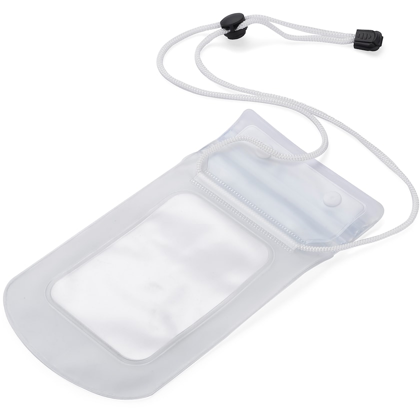Bolsa para móvil personalizada impermeable. La ventana transparente permite usar la función táctil del móvil. Perfecta para proteger el teléfono.