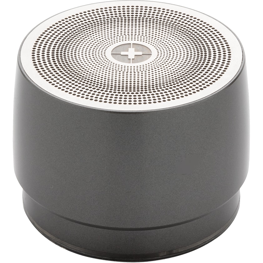Altavoz inalámbrico de Swiss Peak. El altavoz tiene una carcasa de metal y un sub-woofer integrado para graves reforzados. La batería tiene una duración de 5 horas. Gracias a la tecnología BT 5.0, el altavoz se conecta fácilmente a tu teléfono móvil. Funciona a una distancia máxima de 10 metros.