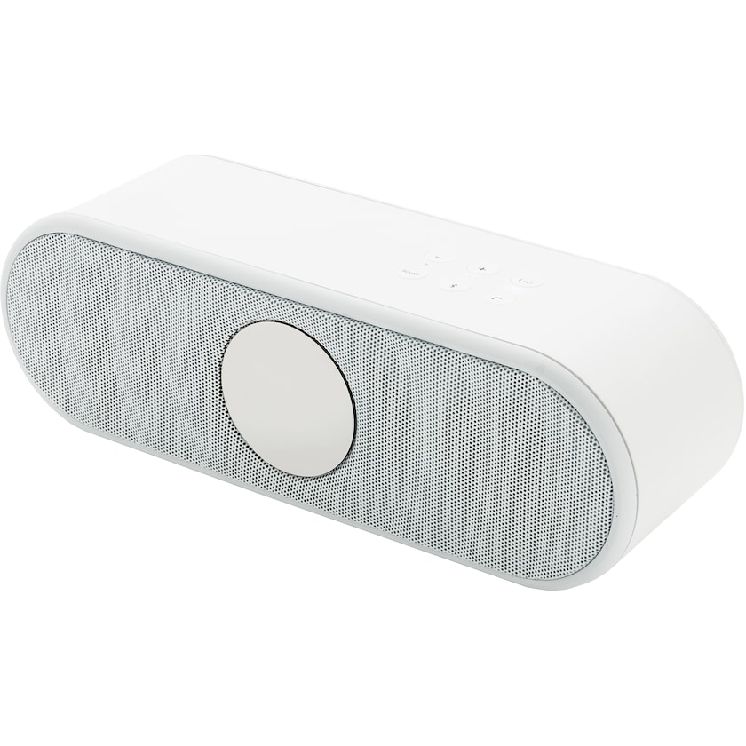 Altavoz estéreo con Bluetooth. El altavoz tiene 6 botones para controlar las siguientes funciones: volumen +/-, recibir llamadas, on/off y el botón para controlar la música. La batería permite escuchar música durante un máximo de 10 horas. Se puede usar con Bluetooth o cable de audio estándar.