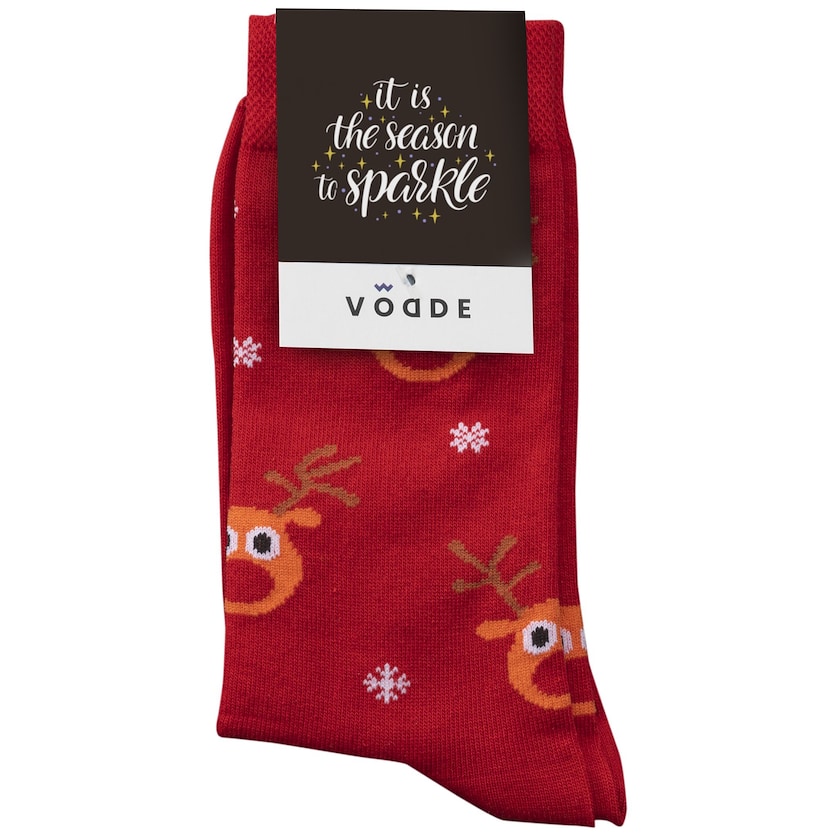 Calcetines ecológicos con estampado navideño. El tejido se fabrica en Europa con 52% algodón reciclado, 44% poliéster reciclado y 4% elastano. Elige entre cuatro colores diferentes. El dibujo no se puede modificar. Tu impresión se realiza en la etiqueta de los calcetines. Disponibles en tallas M (36-40) y L (41-46). Pedido mínimo de 40 pares por talla.