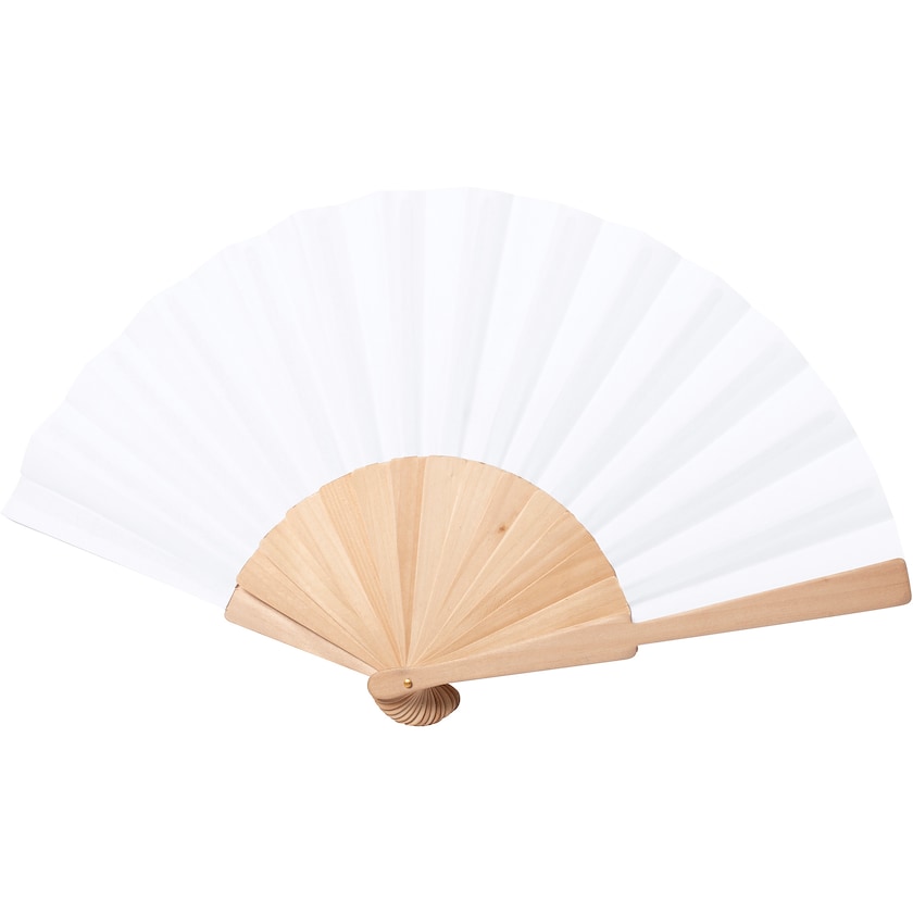 Abanico ecológico. El abanico Cudillero está fabricado con rPET (botellas PET recicladas) y bambú. Un gran favorito del verano y una opción ecológica. El marcado se realiza en un lado de la nervadura de bambú.