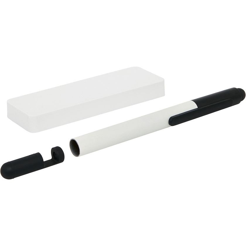 Set de powerbank y bolígrafo táctil. El bolígrafo también sirve como soporte para el móvil. La powerbank tiene output 5V/1A e input 5V/1A. Cable micro USB incluido. El precio de impresión se refiere a la impresión en la powerbank o en el bolígrafo. Se entrega en caja de regalo negra.