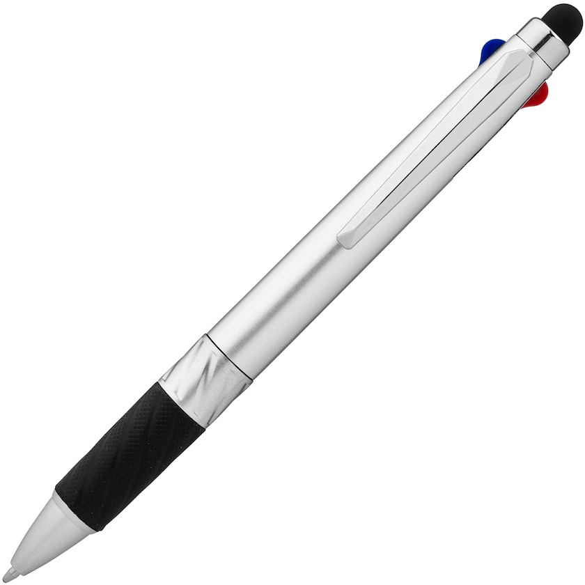 Bolígrafo multifunción con varios colores de tinta y función táctil. El modelo Brandon tiene una cómoda empuñadura y tinta negra, azul y roja.