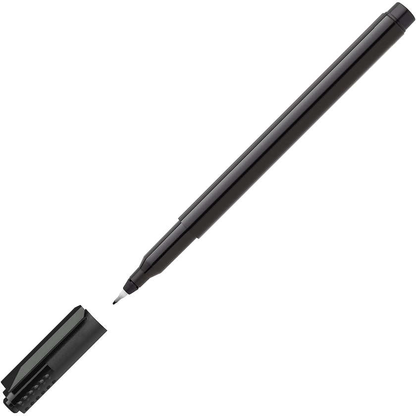 Rotulador permanente con punta muy fina. La punta tiene un grosor de solo 0,5 mm. Perfecto para escribir en productos pequeños. El 90% del plástico del rotulador procede de plástico reciclado.