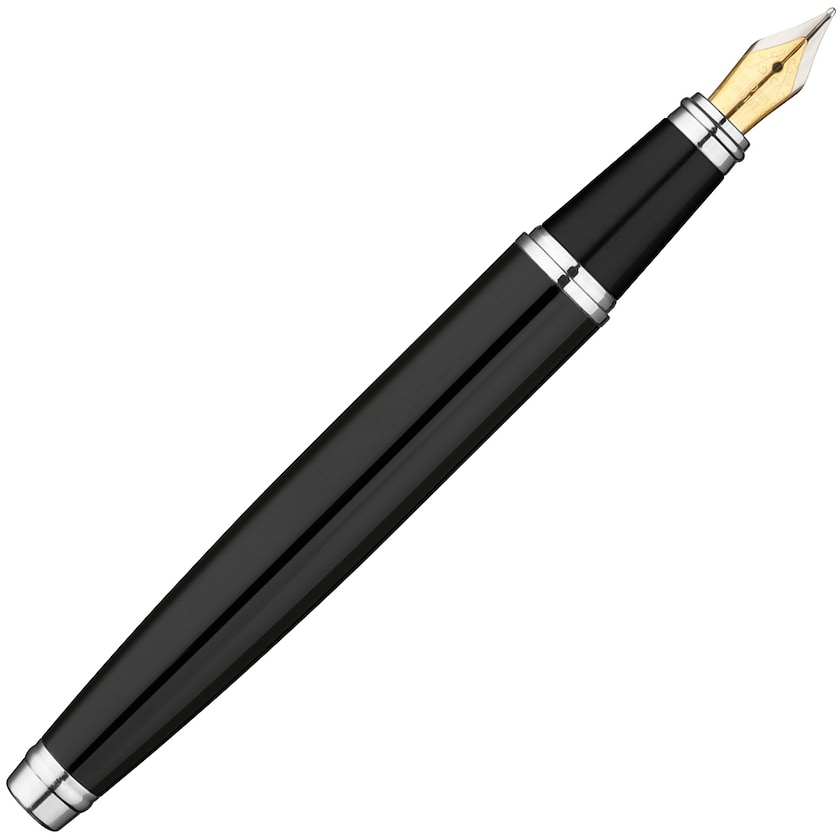 Exclusiva pluma con tapa. Cuerpo negro con detalles cromados. Compra plumas estilográficas personalizadas con logo en Axon Profil.