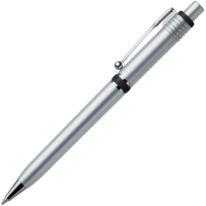 Bolígrafo personalizado plateado con un clip un poco especial.