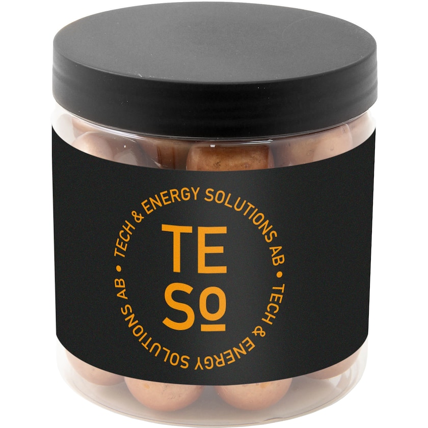Caja de plástico con 150 gramos de deliciosos caramelos de regaliz. Elige entre regaliz con cobertura de chocolate en color bronce, plateado o dorado. La etiqueta se personaliza con tu diseño. Un bonito regalo para clientes importantes.