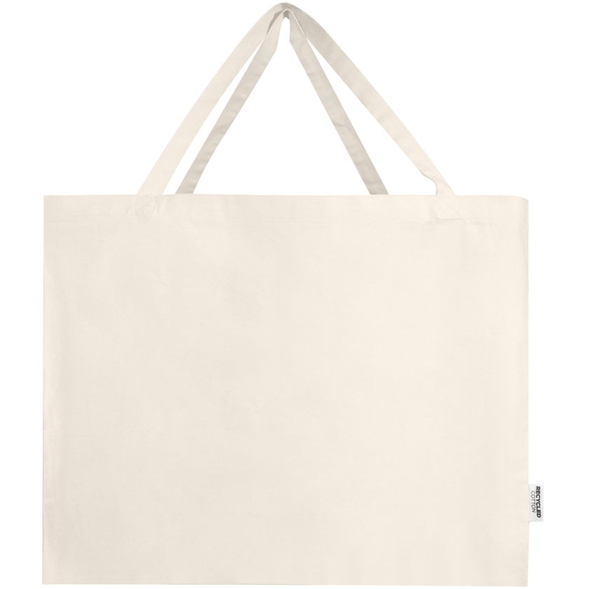 Bolsa grande de tela fabricada con algodón reciclado. La bolsa Hércules está fabricada con un tejido resistente de 220 gramos y tiene asas de 30 cm de largo que pueden soportar un peso de hasta 10 kg. Una bolsa perfecta para quienes necesitan espacio para llevar libros, carpetas o la compra.