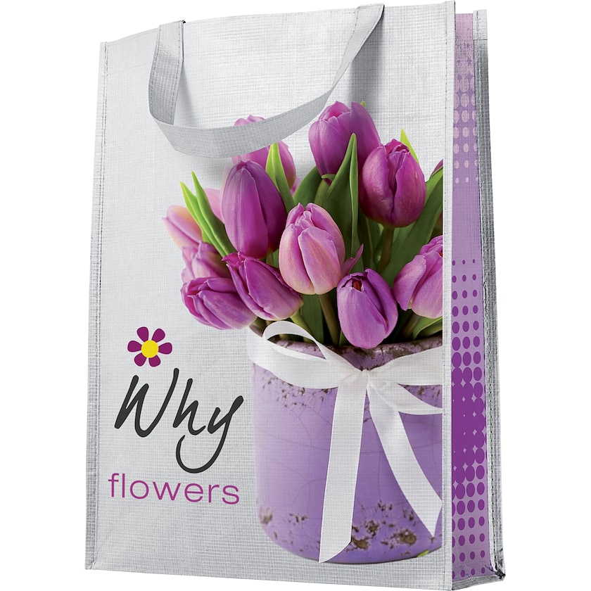 Bolsa de la compra resistente de material laminado. Esta bolsa de la compra se fabrica bajo pedido, lo que permite realizar la impresión sobre toda la superficie hasta los bordes. Es de tejido tipo PP-woven y está laminada para mayor durabilidad. Con un uso normal, es casi imposible romper esta bolsa. Pedido mínimo de 1000 uds.
