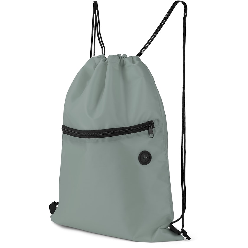Bolsa térmica con forma de la clásica mochila de cuerdas. La bolsa Kiwi se puede usar para guardar ropa o como nevera. Esta bolsa térmica es de poliéster con aislamiento térmico de alta calidad del tipo PEVA. En la parte frontal de la bolsa hay un bolsillo con cremallera y salida para auriculares.