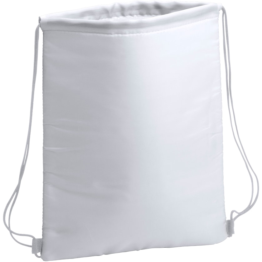 Amplia bolsa térmica con forma de mochila de cuerdas. Mika se puede plegar para que ocupe poco espacio cuando no se usa. La impresión se realiza en un color. Una bolsa térmica económica y muy práctica.