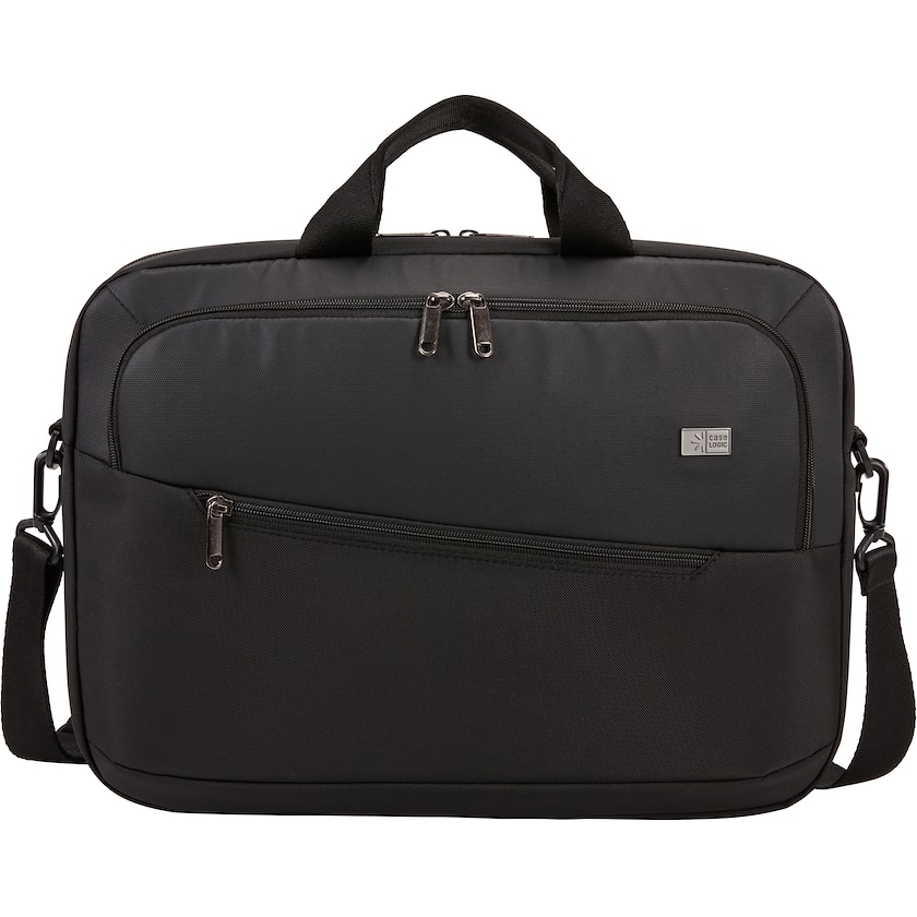Bolsa para portátil de 15,6 pulgadas de Case Logic. En el interior tiene un espacio acolchado para portátiles de hasta 15,6 pulgadas y otro espacio para tablets de hasta 12 pulgadas. En la parte frontal tiene otro compartimento para objetos pequeños.
