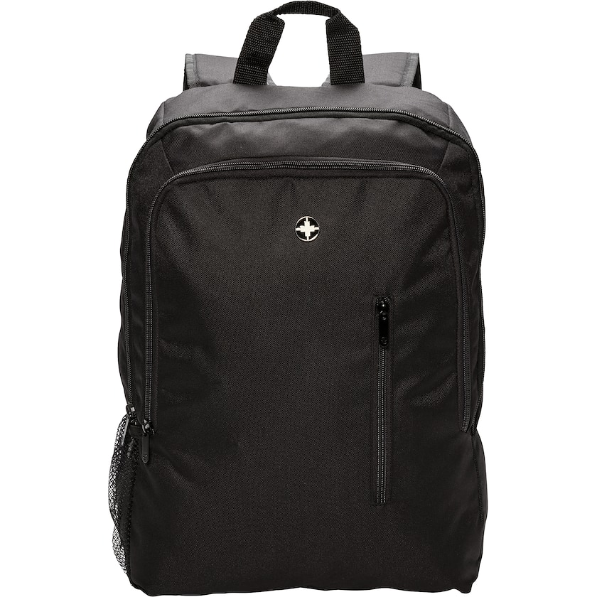 Elegante mochila para portátil de diseño aerodinámico de Swiss Peak. Swiss Peak Typhoon tiene un compartimento acolchado que sirve para casi todos los portátiles de hasta 17 pulgadas. La mochila tiene varios bolsillos para objetos más pequeños. En el lateral hay un bolsillo especial para una botella. La mochila no contiene PVC.