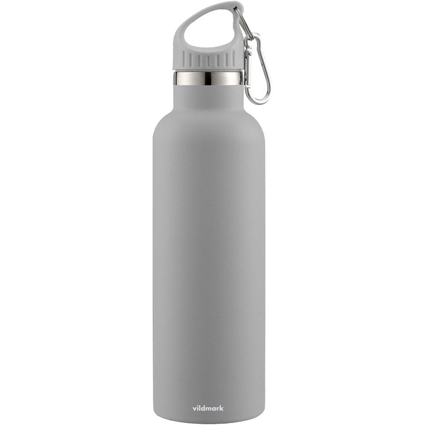 Botella deportiva que también sirve como termo. Fabricada con resistente acero 18/8, un material prácticamente indestructible. Mantiene el agua caliente 12 horas o fría 24 horas. El tapón tiene un mosquetón.