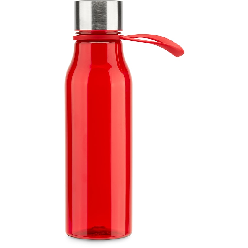 Cantimplora de tritán sin BPA. Está disponible en varios colores. El asa de silicona en el tapón permite llevar la botella fácilmente o colgarla de una bolsa o mochila. Se puede lavar en lavavajillas. El tapón es de metal.