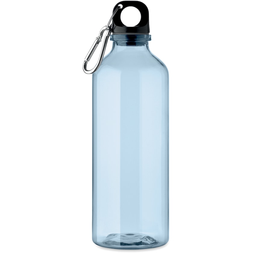 Botella de agua fabricada con rPET ecológico con gran supperficia para la impresión digital. Toby tiene una capacidad de 50 cl y está equipada con un mosquetón para poder colgarla fácilmente, por ejemplo, de una mochila.