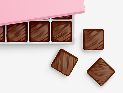 Normalmente, todo el exterior y el interior de la caja de chocolate se personalizan con tu diseño. Si los bombones están envueltos, los envoltorios también se personalizan. Encontrarás plantillas de impresión y más información en la página del producto correspondiente.