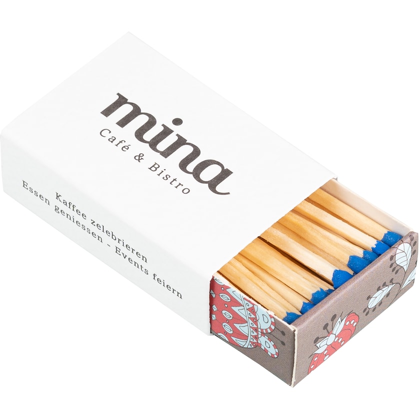 Caja de cerillas con impresión digital que se puede comprar a partir de 1000 unidades. Un modelo perfecto para los que quieren una caja de cerillas clásica con un tiempo de entrega corto. La impresión se realiza en CMYK. Puedes elegir entre 16 colores diferentes para la cabeza y 3 colores diferentes para la madera.
