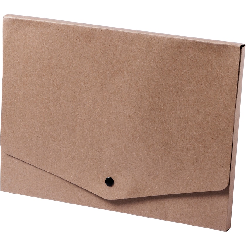 Carpeta de papel reciclado. Isolde tiene espacio suficiente para documentos y la tapa se cierra con un botón.