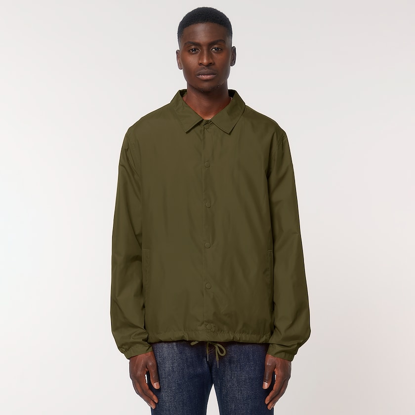 Cazadora deportiva fina de poliéster reciclado. La cadazora tiene bolsillos en los laterales y uno en el interior. Modelo unisex.