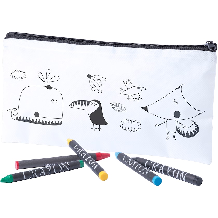 Set de dibujo con ceras y estuche. El estuche tiene un motivo preimpreso que se puede colorear.