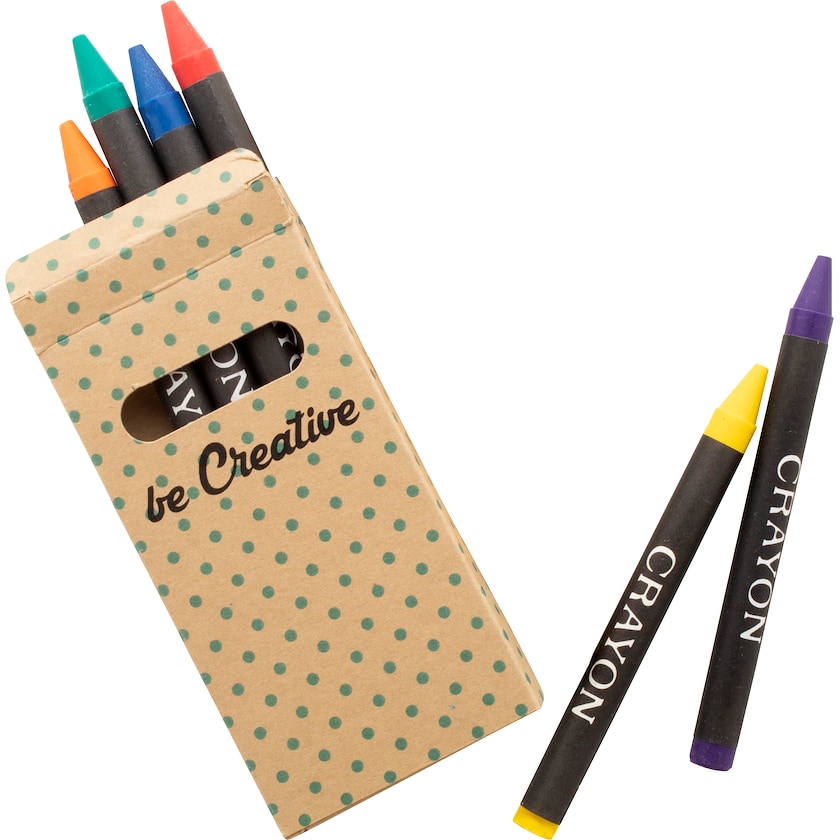 Pinturas de cera con envase totalmente personalizado. Contiene 6 pinturas de cera de distintos colores. Descarga la plantilla de impresión y diseña tu propio envase.