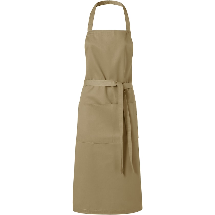 Delantal largo de sarga gruesa. Práctico bolsillo abdominal.