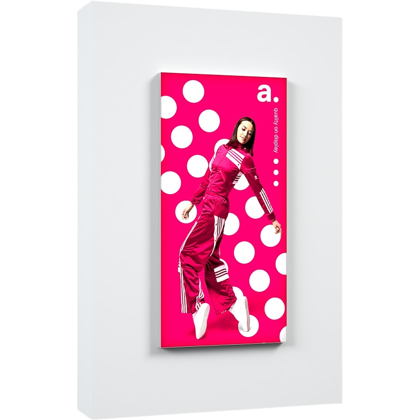 Display luminoso grande personalizado. Esta pantalla luminosa es perfecta tanto para escaparates como para ferias y eventos. Tu diseño se imprime con un método de impresión especial que hace que los colores se vean de una forma fantástica incluso con un uso prolongado. Si quieres cambiar el diseño en el futuro, solo tendrás que comprarnos una nueva impresión. El montaje es sencillo y rápido y lo puede realizar una sola persona sin herramientas. La iluminación se realiza con un moderno sistema de luces LED con el método SEG.
