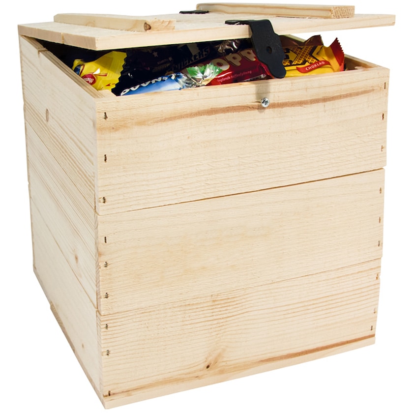 Caja de madera con 2,5 kilos de dulces de la mejor calidad. Incluye, entre otros, Bounty, Plopp, chocolate con leche y Kexchoklad. Se puede realizar la impresión digital en una de nuestras tres tarjetas de felicitación navideña. La tarjeta se coloca dentro de la caja.