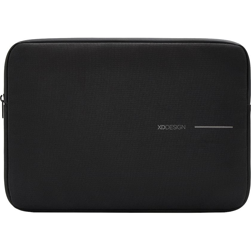 Funda para portátil de 16 pulgadas de XD Design. La funda está hecha con rPET, es decir, PET reciclado. El tejido es resistente a la humedad y la cremallera es impermeable. El forro interior es de tejido polar suave.