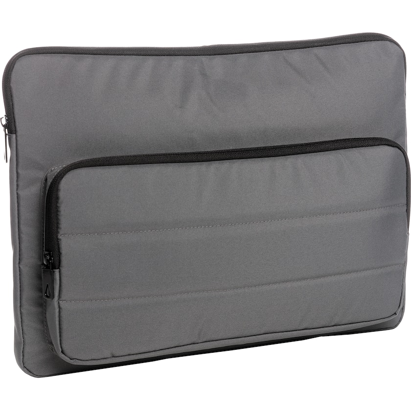 Funda para portátil ecológica personalizada. Sirve para la mayoría de los ordenadores portátiles de hasta 15.6 pulgadas. El tejido exterior y el forro son de poliéster 100% reciclado. Tiene un compartimento de almacenamiento con cremallera en la parte delantera. El modelo Fullerton tiene un buen acolchado para proteger el portátil de golpes y choques.