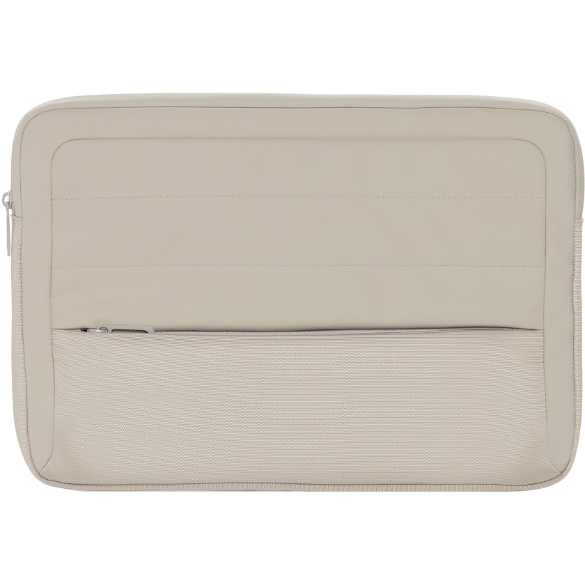 Elegante funda para ordenador de poliéster reciclado. Sirve para un portátil de 15,6 pulgadas. Tiene un bolsillo con cremallera en la parte delantera.