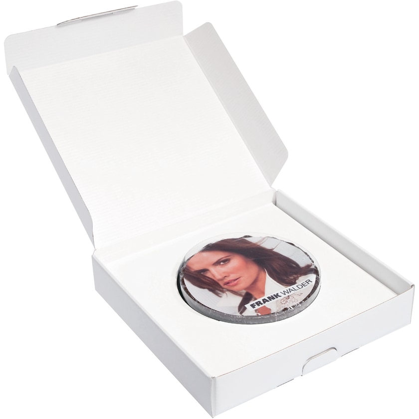 Pastel con impresión digital en la parte superior que se entrega en caja para envío por correo. El pastel está disponible en sabor chocolate y en sabor naranja. La impresión se realiza en color caramelo sobre una fina capa de azúcar. La caducidad se calcula a partir de la fecha de entrega. No es posible imprimir la caja.