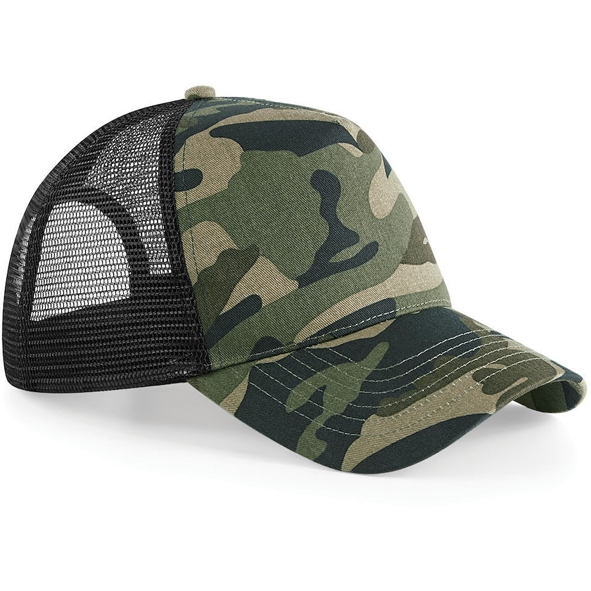 Gorra de camuflaje con rejilla. Elige entre dos estampados de camuflaje diferentes. Las gorras tienen panel frontal de algodón y soporte de poliéster.