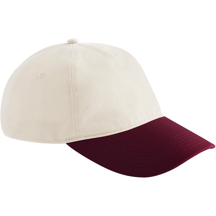 Gorra de color natural con visera de color. Hype está fabricado con un tejido sin estructura en 100% algodón cepillado.