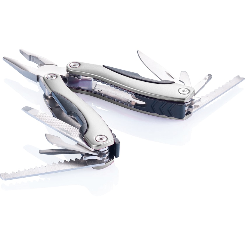 Elegante herramienta multifunción a un buen precio. El modelo Baumgarten está fabricado en acero inoxidable y aluminio y tiene 14 funciones. Se entrega con una funda negra.