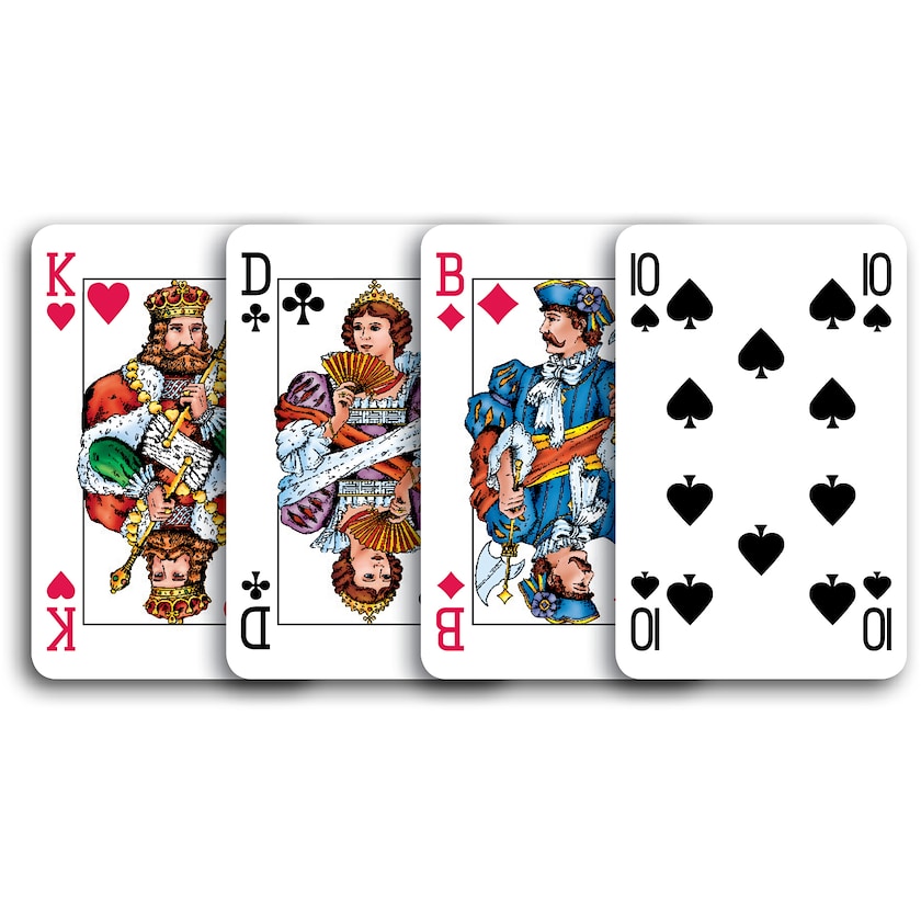 Baraja de cartas con las clásicas figuras danesas. La baraja contiene 52 cartas y 4 jokers y es de calidad de casino. La baraja se fabrica en Suecia y cuenta con la acreditación FSC®. Cada baraja viene en un envoltorio individual de celofán. Toda la parte posterior se personaliza con tu diseño.