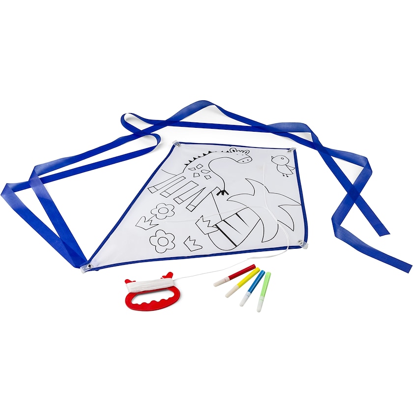 Bonita cometa que se puede colorear. La cometa Falcon se entrega sin montar con cuatro rotuladores para colorear. Un producto publicitario perfecto para familias con niños.