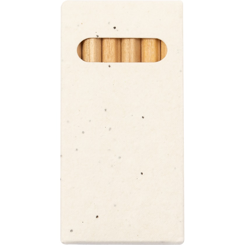 6 lápices de colores en estuche de papel con semillas. Cuando las pinturas se acaban, el estuche de papel se puede plantar para tener unas bonitas petunias de varios colores.