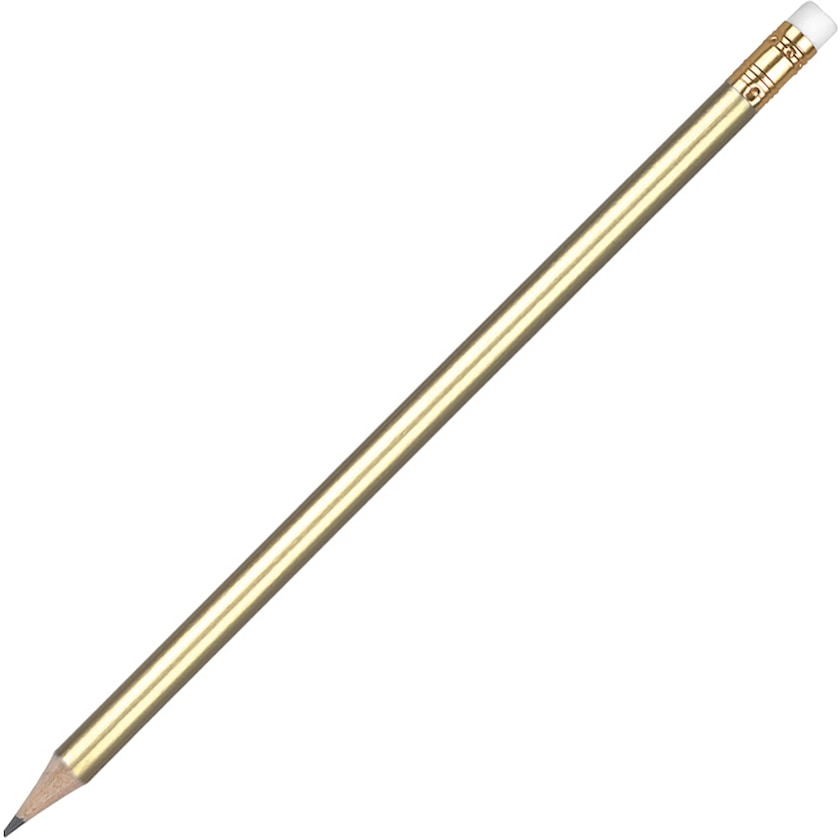 Lápiz con goma de borrar blanca de color dorado. Si se realiza la impresión en más de un color, los lápices se envían sin afilar. Disponibles en muchos colores. ¿Cuál es tu favorito?