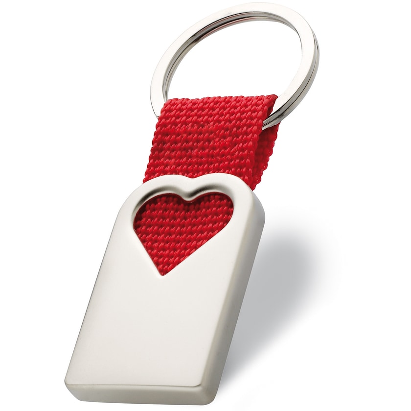 Llavero metálico con motivo de corazón. El llavero tiene la superficie mate y se envía en una caja de regalo negra.