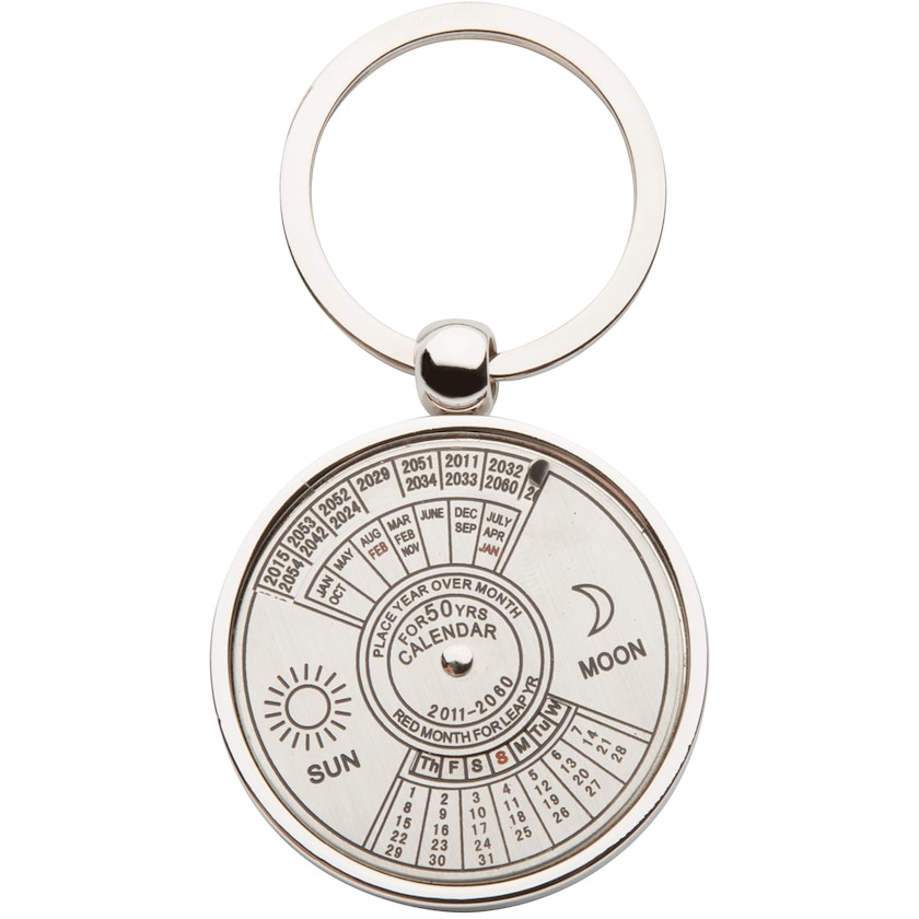 Llavero de metal con calendario rotativo. El calendario se extiende hasta el año 2060. Se entrega en una caja negra. Un regalo que no pasa de moda.