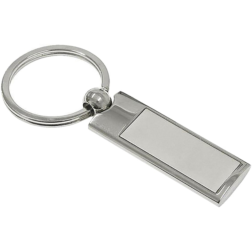 Elegante llavero de metal alargado. Se entrega en una caja de cartón negra.