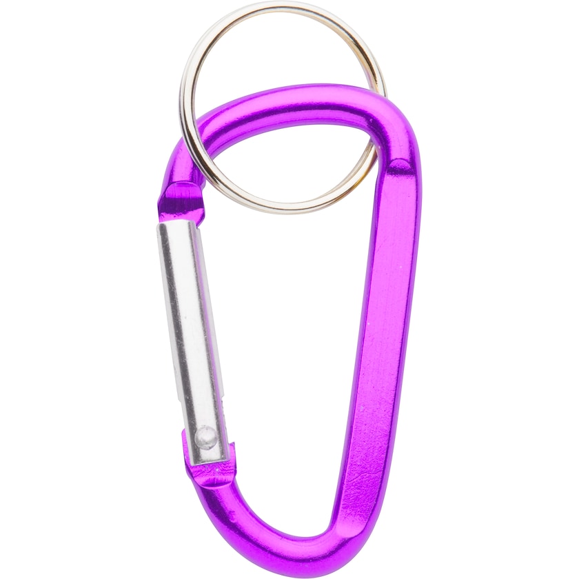 Mosquetón de aluminio con cierre metálico. El marcado se realiza con grabado láser.