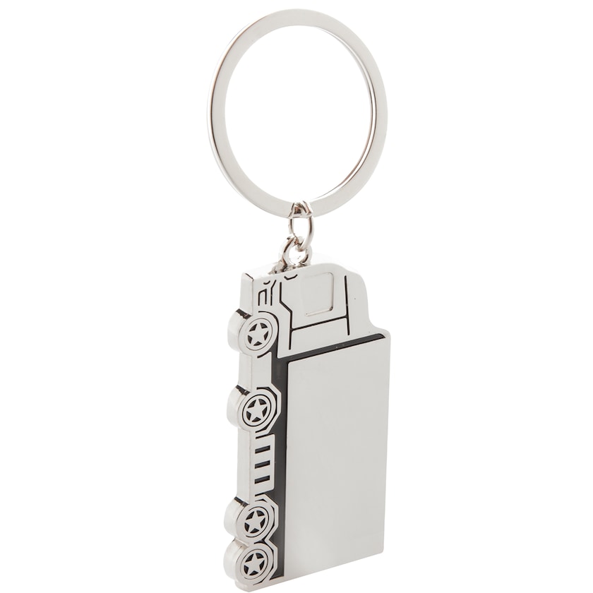 Llavero de metal con forma de camión. Se personaliza con grabado láser. Se entrega en una caja negra individual.